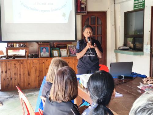 การดำเนินโครงการฯ ในครั้งนี้ ได้รับเกียรติจากวิทยากร บรรยายให้ความรู้ ในหัวข้อ หลักปรัชญาของเศรษฐกิจพอเพียง, การยุติความรุนแรงต่อสตรีในระดับพื้นที่ และสาธิตการฝึกอาชีพที่ครัวเรือนต้องการฝึกปฏิบัติ ซึ่งครัวเรือนเป้าหมายมีความต้องการฝึกอาชีพ “กุ้ยช่ายทอด และน้ำยาอเนกประสงคฺ“ เพื่อให้กลุ่มเป้าหมายได้นำไปประกอบอาชีพ สร้างอาชีพสร้างรายได้ พัฒนาตนเองให้มีคุณภาพชีวิตที่ดีขึ้น