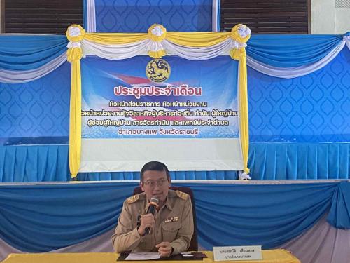 อำเภอบางแพ จัดประชุมหัวหน้าส่วน กำนัน ผู้ใหญ่บ้าน ฯลฯ ประจำเดือน กันยายน 2568 โดยมี นายสมบัติ เสียมทอง นายอำเภอบางแพ เป็นประธานในการประชุม เพื่อชี้แจงนโยบาย ข้อราชการและข้อสั่งการ กำนัน ผู้ใหญ่บ้าน ผู้ช่วยผู้ใหญ่บ้าน แพทย์ประจำตำบล และสารวัตรกำนัน ทุกหมู่บ้าน นำไปขับเคลื่อนการดำเนินในหมู่บ้าน/ชุมชน การปฏิบัติงานในพื้นที่ การรายงานให้ทางอำเภอทราบ